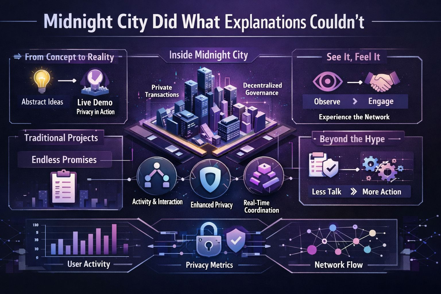 To me, it shows that Midnight understands a problem many technically ambitious projects ignore. If people cannot picture what the infrastructure is for, they will never care enough to follow its details. Strong systems still need a bridge between architecture and perception. Otherwise they remain locked inside documentation, understood only by the few people already deep inside the subject.