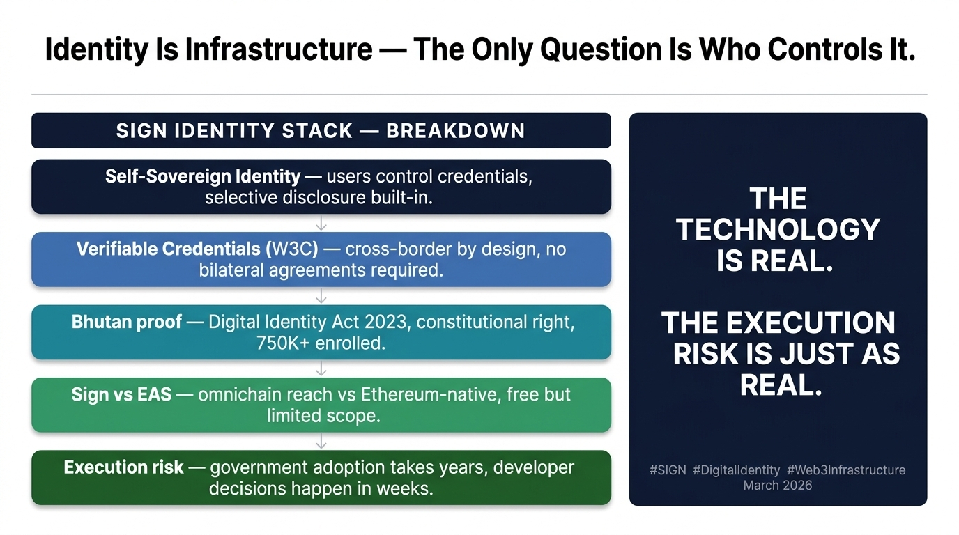 Răspunsul Sign este acoperirea omnichain. EAS este funcțional nativ Ethereum. Sign operează simultan pe Bitcoin, TON, Solana și Ethereum. Pentru guvernele suverane care au nevoie ca identitatea să funcționeze atât pe infrastructura CBDC privată, cât și pe rețelele blockchain publice — această capacitate cross-chain este valoroasă din punct de vedere arhitectural în moduri în care EAS pur și simplu nu poate concura.