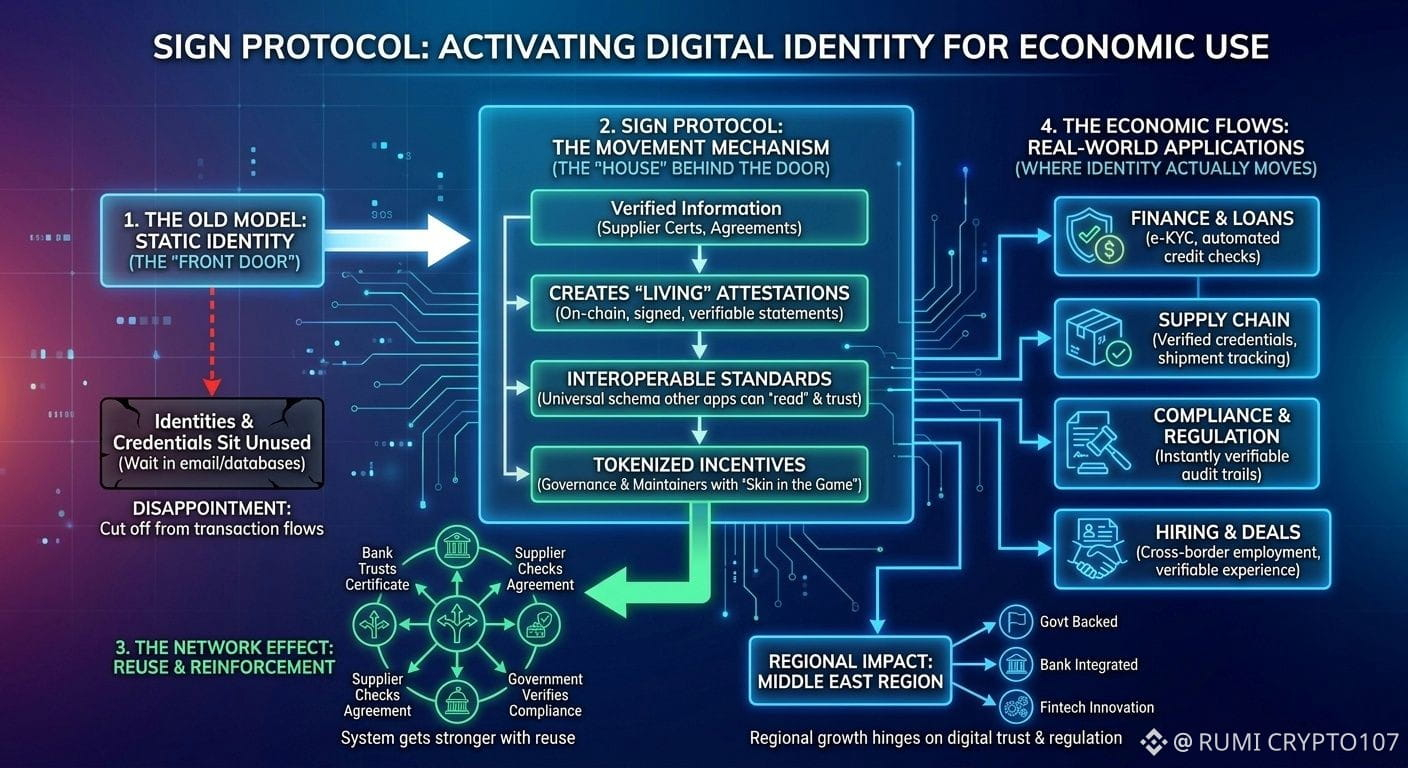 You know, there was a time I was obsessed with anything that had to do with digital identity. If a project mentioned ownership, verification, or sovereignty, I was all in—convinced it was the next huge cycle. But the more I dug in, the more disappointed I got. Most of them were amazing at creating these shiny profiles and credentials, but then… nothing. The identities just sat there, completely cut off from real money moving, deals being made, or everyday business stuff. It felt like they built the front door but forgot the whole house behind it.