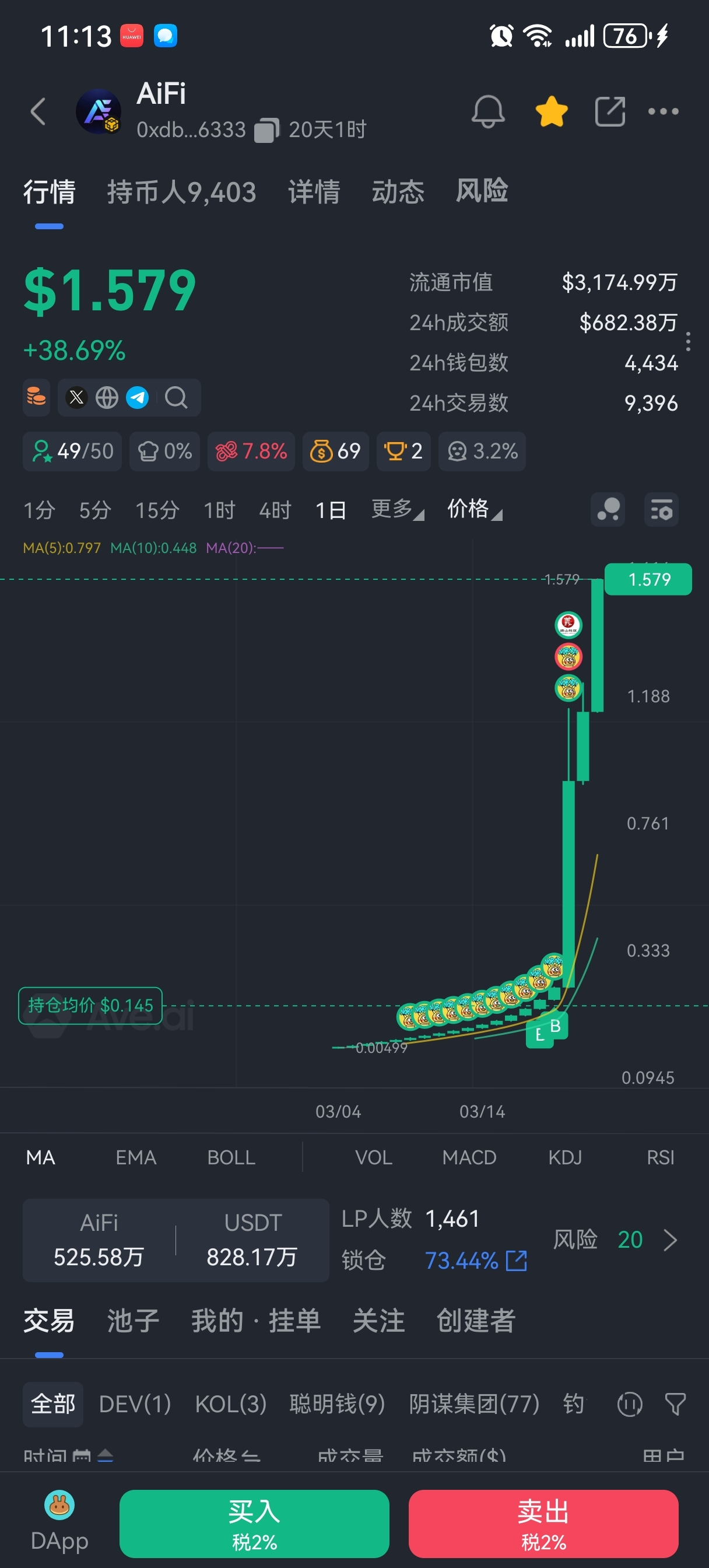 从0.00499到1.579U,AiFi用实力证明了自己的强势!每一次回调都是上车机会,每一次新高都是新的起点,主升浪才刚刚开始!