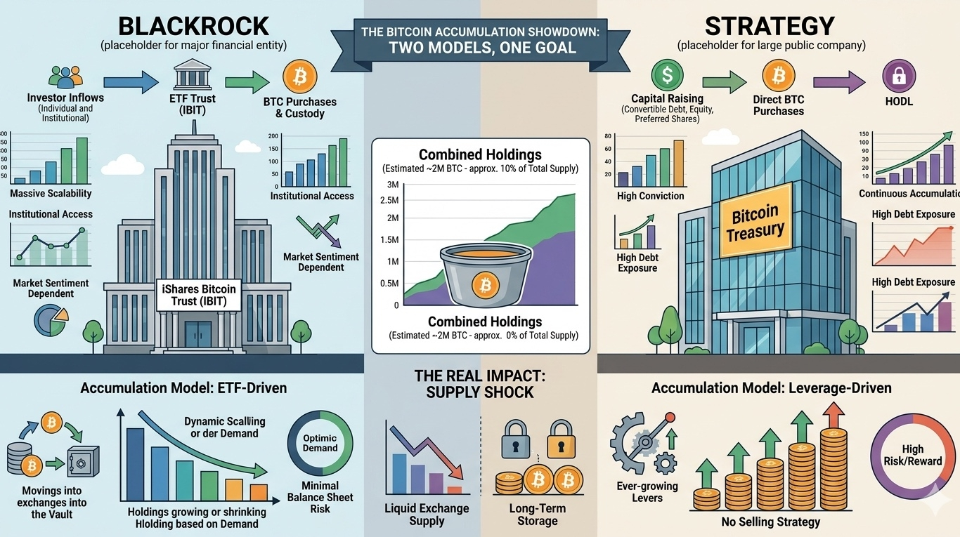 Cu ambele entități acumulând agresiv BTC, această bătălie creează o strângere a ofertei în timp real care ar putea defini următorul ciclu de creștere.