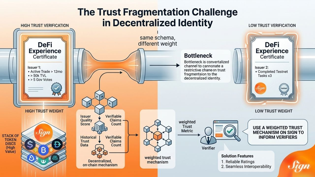 Îmi place că Sign face acreditivele portabile și verificabile între lanțuri. Acea parte este cu adevărat puternică. Dar nu îmi place că protocolul lasă în prezent întreaga problemă a ponderării încrederii în seama verificatorului. La scară, acest lucru creează acreditive fragmentate ascunse care par interschimbabile, dar nu sunt.
