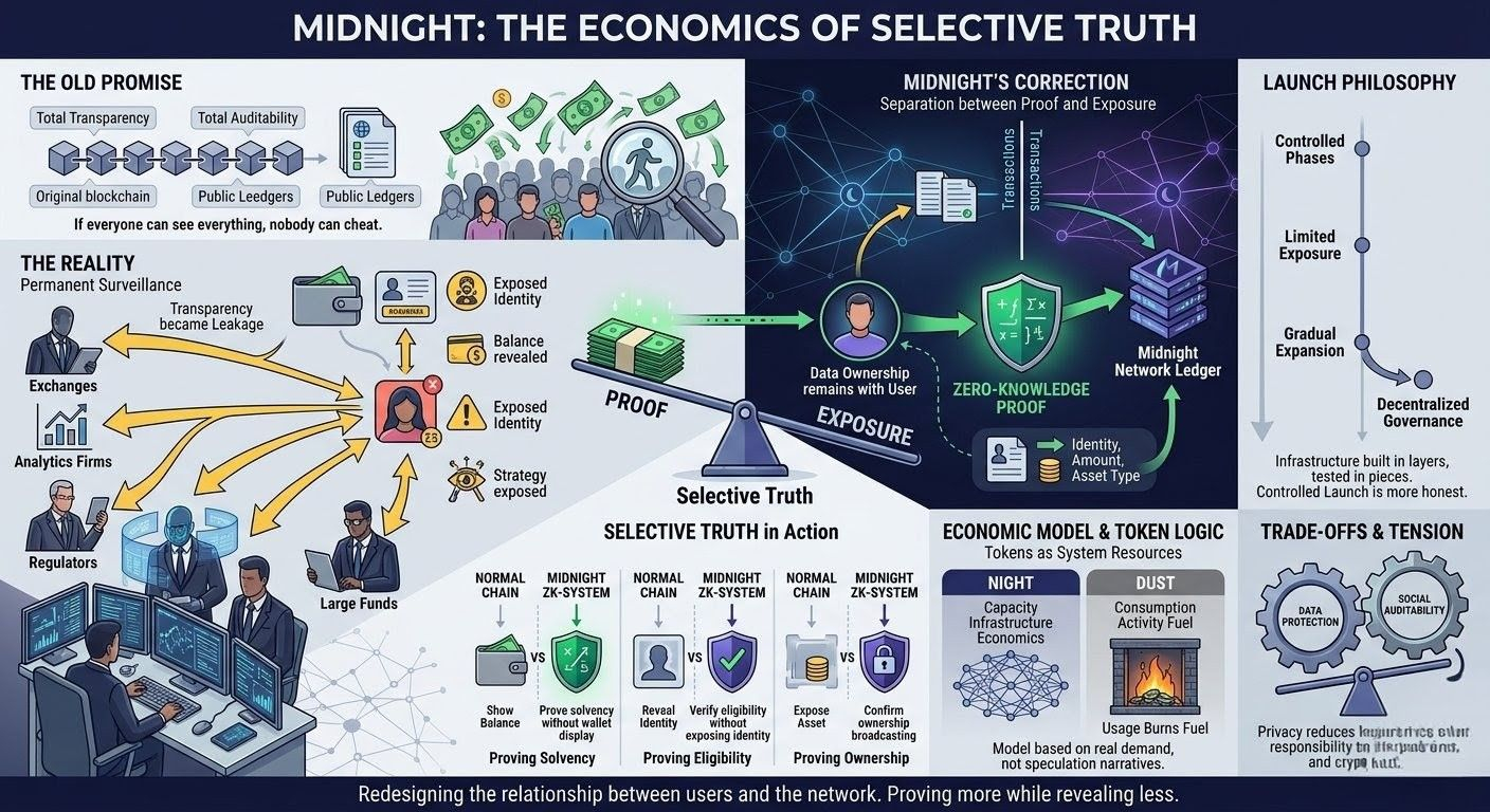 Midnight is built on the assumption that the next phase of blockchain design will not be about showing more, but about proving more while revealing less. That assumption could be wrong. It could also be early. Markets often reject changes that make systems more complex, even when the complexity exists for a reason.