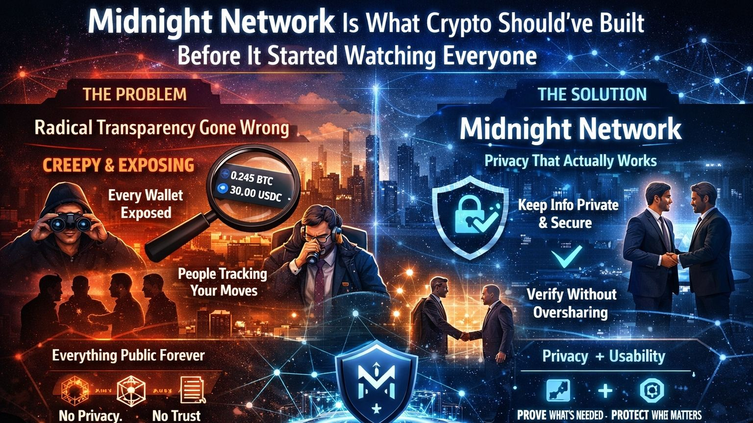 Midnight Network finally clicked for me when I stopped looking at it like “another privacy project” and started looking at it as a reaction to one of crypto’s dumbest habits: pretending radical transparency is somehow noble.