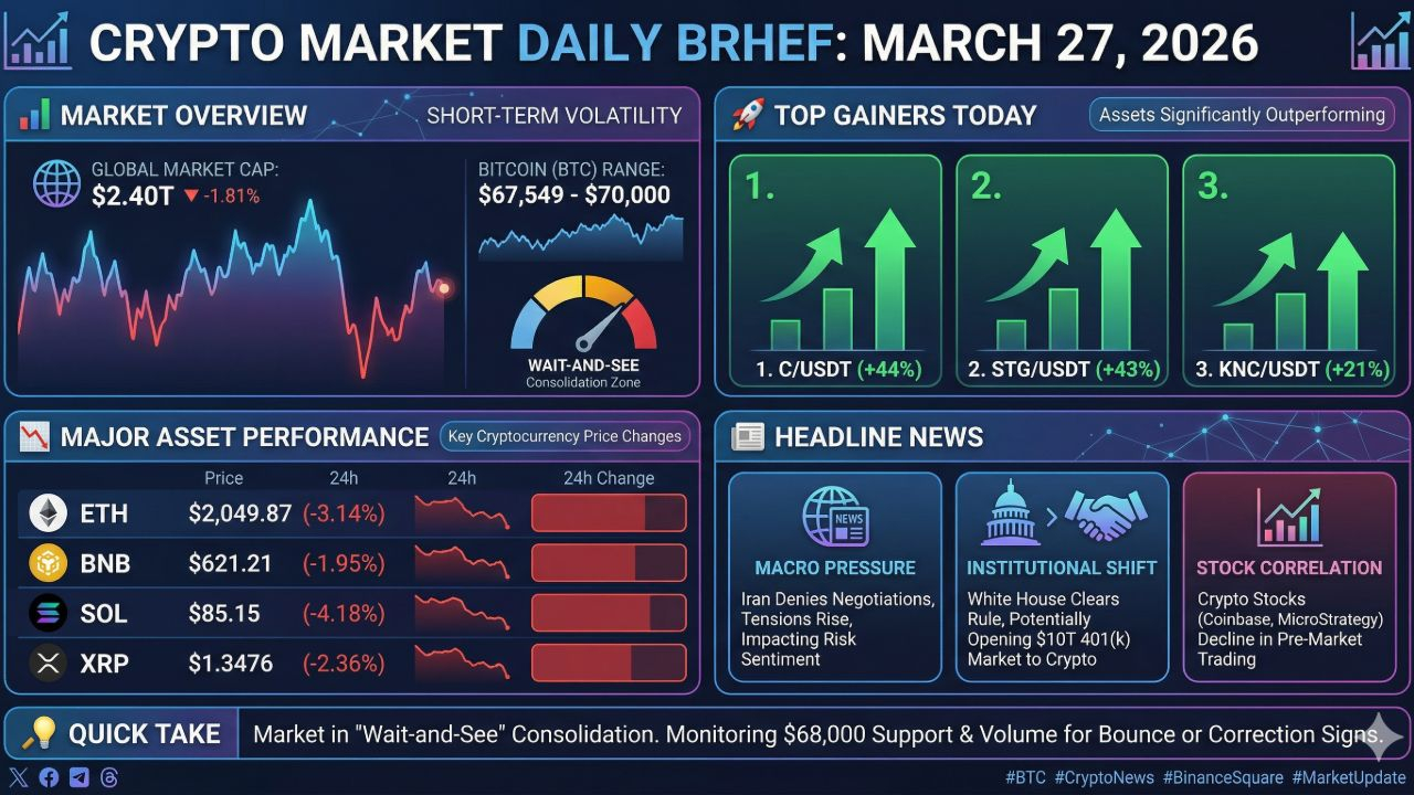 The market is currently in a "wait-and-see" consolidation phase. With the $68,000 support level being tested, keep a close eye on volume for signs of a bounce or further correction.