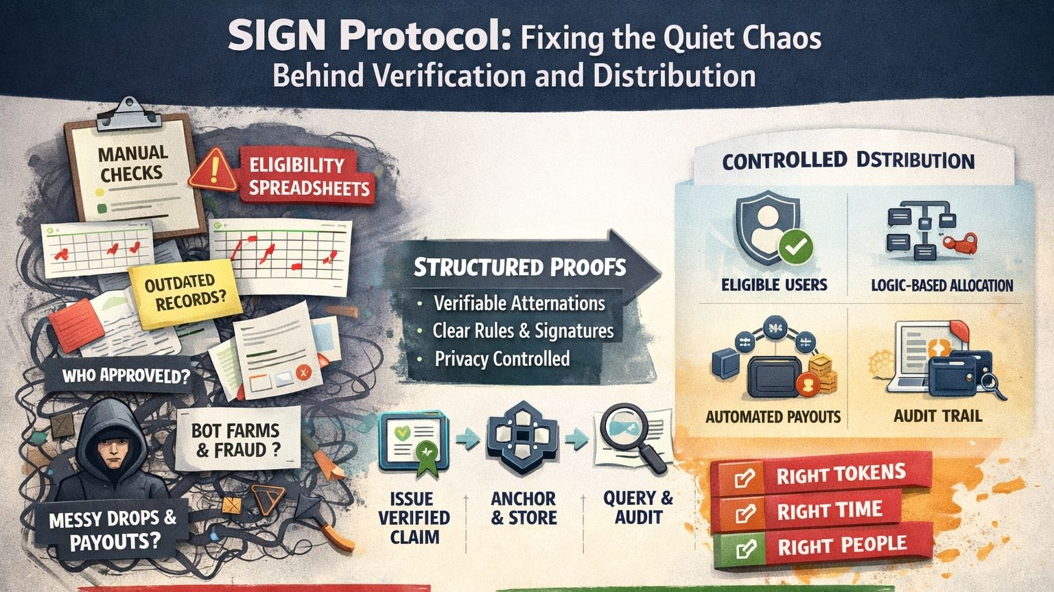 Look, the real problem is not some grand philosophical shortage of trust. The problem is boring. Ugly, even. Spreadsheets break. Manual checks get sloppy. Eligibility rules get interpreted differently by different people. Wallet lists get outdated. Airdrops go to the wrong accounts. Verification gets repeated five times because nobody wants to be the person who missed one bad record. That is the actual battlefield.