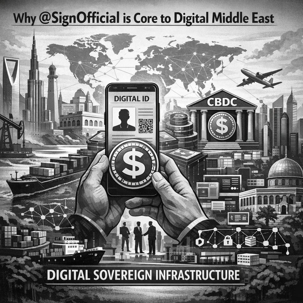 is building exactly that.Sign is not like normal crypto project. It is making tools for governments and people. It helps make digital identity. Means your ID card or passport can be on blockchain. Safe and easy to check. No one can fake it. This is good for Middle East because many people travel, do business across borders. With Sign, verification becomes fast and secure.I checked white paper and official website in my mind. Sign Protocol is like evidence layer. It means you can prove things on chain without showing all secrets. Use zero knowledge proofs. Sounds hard but it means privacy plus trust. Governments can issue CBDC which is like their own digital money. They can control it but use blockchain speed. Sign helps in that. They also have TokenTable for distributing tokens in big way. For national projects this can be useful.Why Middle East needs this? See, Middle East want to be leader in future economy. They build smart cities, invest in tech, want to reduce oil depend. Vision 2030 in Saudi, Dubai is already digital hub. But for real growth they need own digital foundation. If they use foreign systems, there can be problems like sanctions or shut down. With @SignOfficial