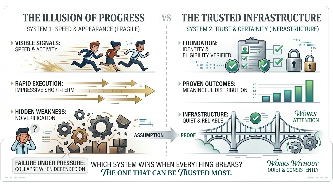 but only trust decides whether something actually lasts.And that’s where most systems quietly fail.Not in ambition.Not in execution.But in the invisible layer they ignore — verification.When identity is unclear, participation becomes uncertain.When eligibility isn’t proven, outcomes lose meaning.