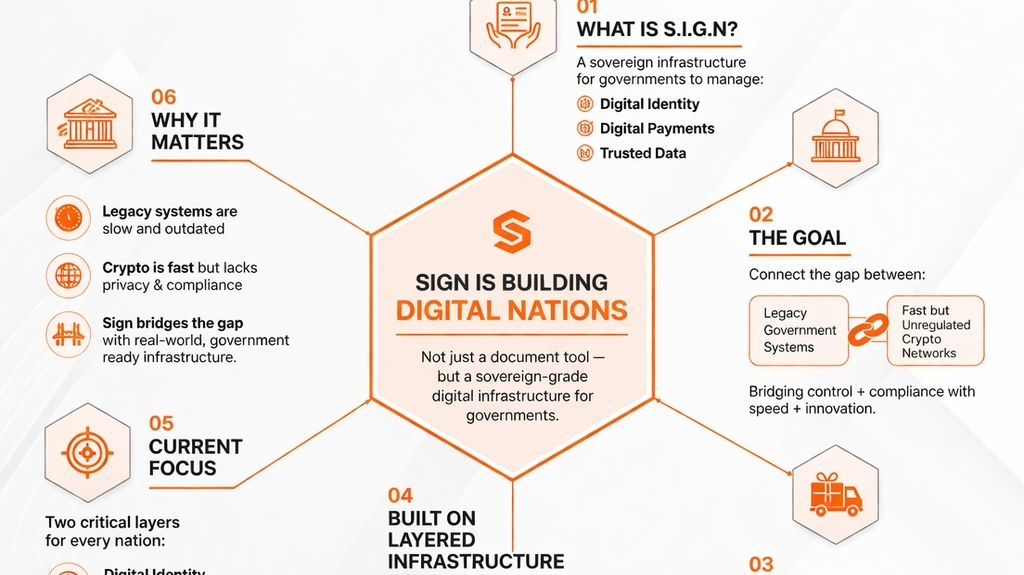 Ceea ce mi-a atras atenția a fost ideea din spatele S.I.G.N. Nu este doar un produs, este un cadru pentru națiuni digitale. În loc să construim unelte izolate, Sign creează un sistem în care guvernele pot gestiona identitatea, plățile și datele într-un mod structurat. Gândiți-vă la el ca la un strat digital privat pentru control și securitate, conectat la o rețea publică pentru mișcare și interacțiune. Acea conexiune este ceea ce face întregul sistem puternic.