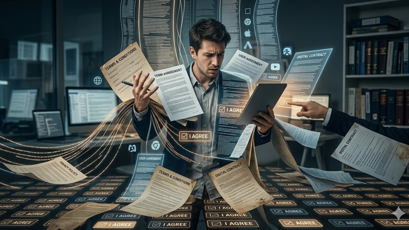 In a single week I clicked agree seven times. Different platforms. Different services. Different documents I didn't fully read.