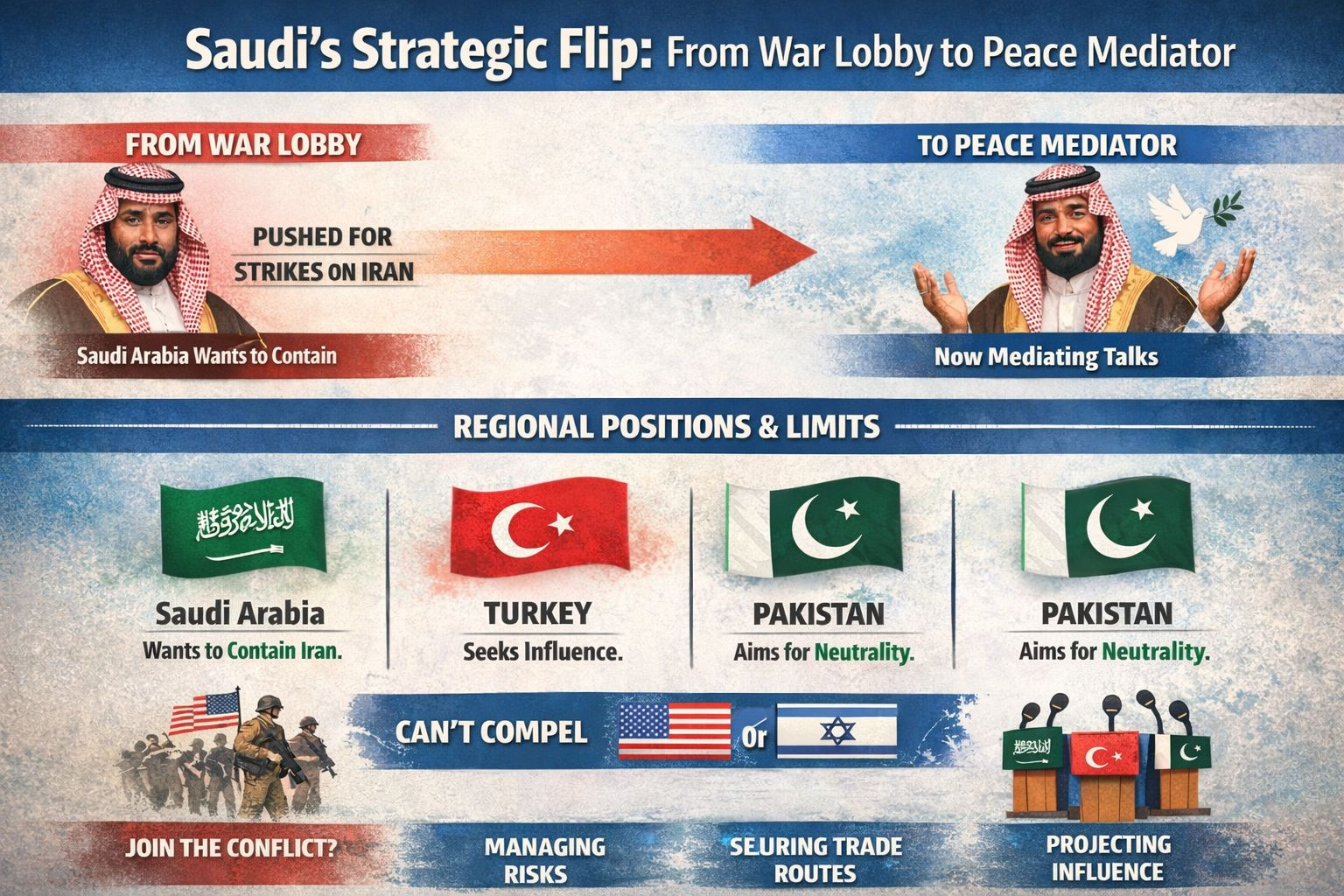 Ironia este stark: țara care odată a împins pentru escaladare acum acționează ca mediator al păcii. Analiștii susțin că această mișcare este mai puțin despre pace și mai mult despre aspecte și poziționare strategică. Narațiunea permite Riyadului să își afirme influența în regiune, în timp ce se protejează de vină directă pentru orice escaladare.