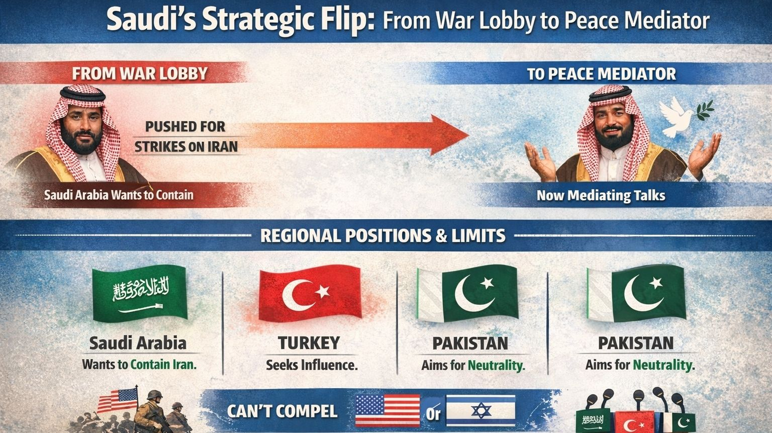 Raporturile indică faptul că Arabia Saudită, sub conducerea Prințului Moștenitor Mohammed bin Salman, a făcut anterior lobby pentru ca administrația Trump să autorizeze atacuri asupra Iranului, vizând potențial schimbarea regimului. Astăzi, Riyadh se poziționează ca un mediator neutru. Analiștii numesc această schimbare o pivotare strategică dramatică, subliniind un decalaj profund de credibilitate.