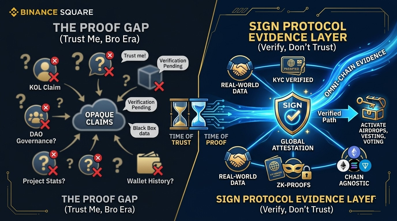 Majoritatea Web3 este o "cutie neagră" de afirmații. Un proiect spune că au 1M utilizatori? Încrede-te în ei. Un KOL afirmă că au fost un investitor timpuriu? Încrede-te în ei. Un DAO spune că este descentralizat? Încrede-te în ei. Aceasta este "Fosa de Dovadă," și aici Protocolul Sign ($SIGN ) schimbă jocul.