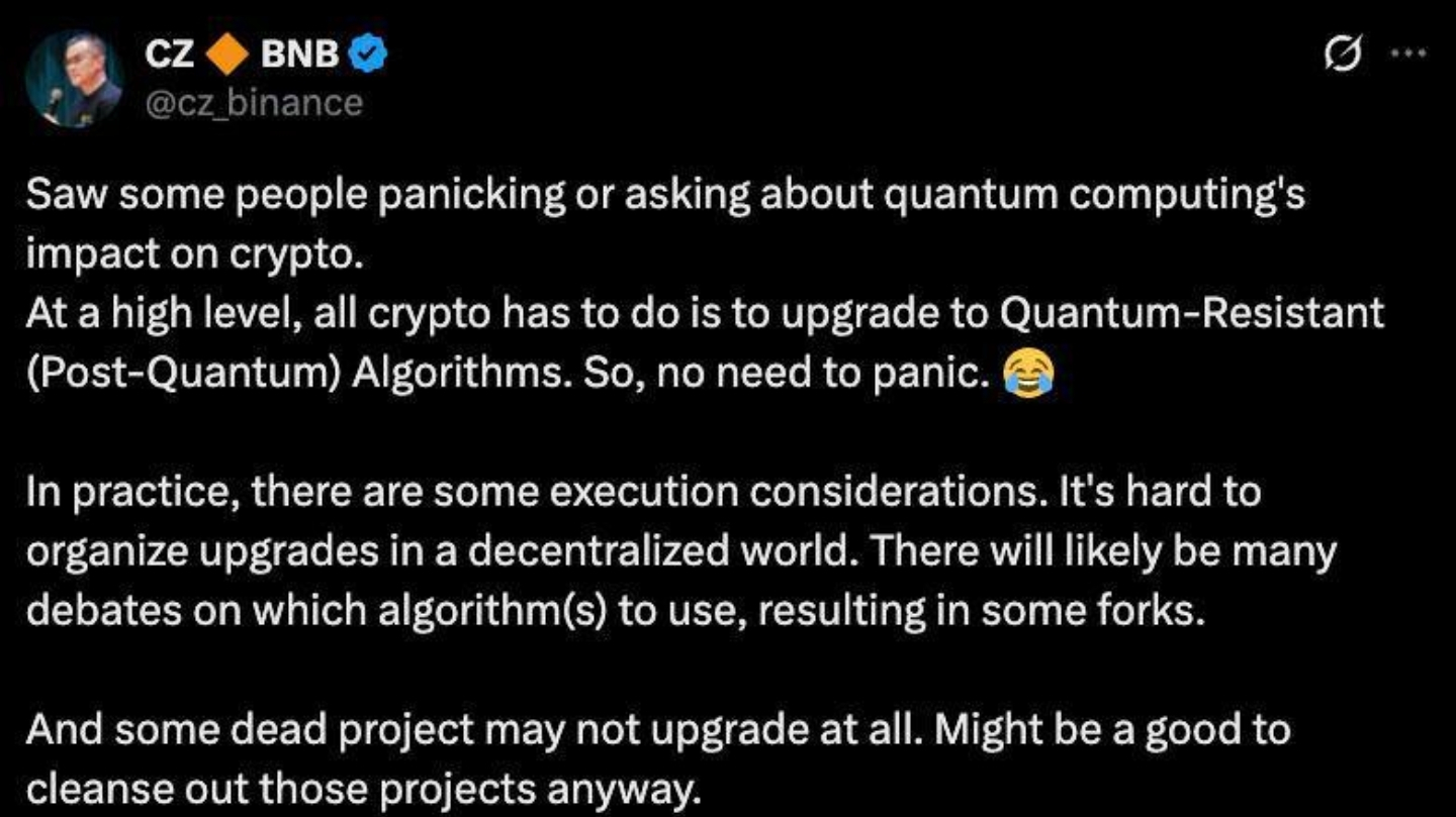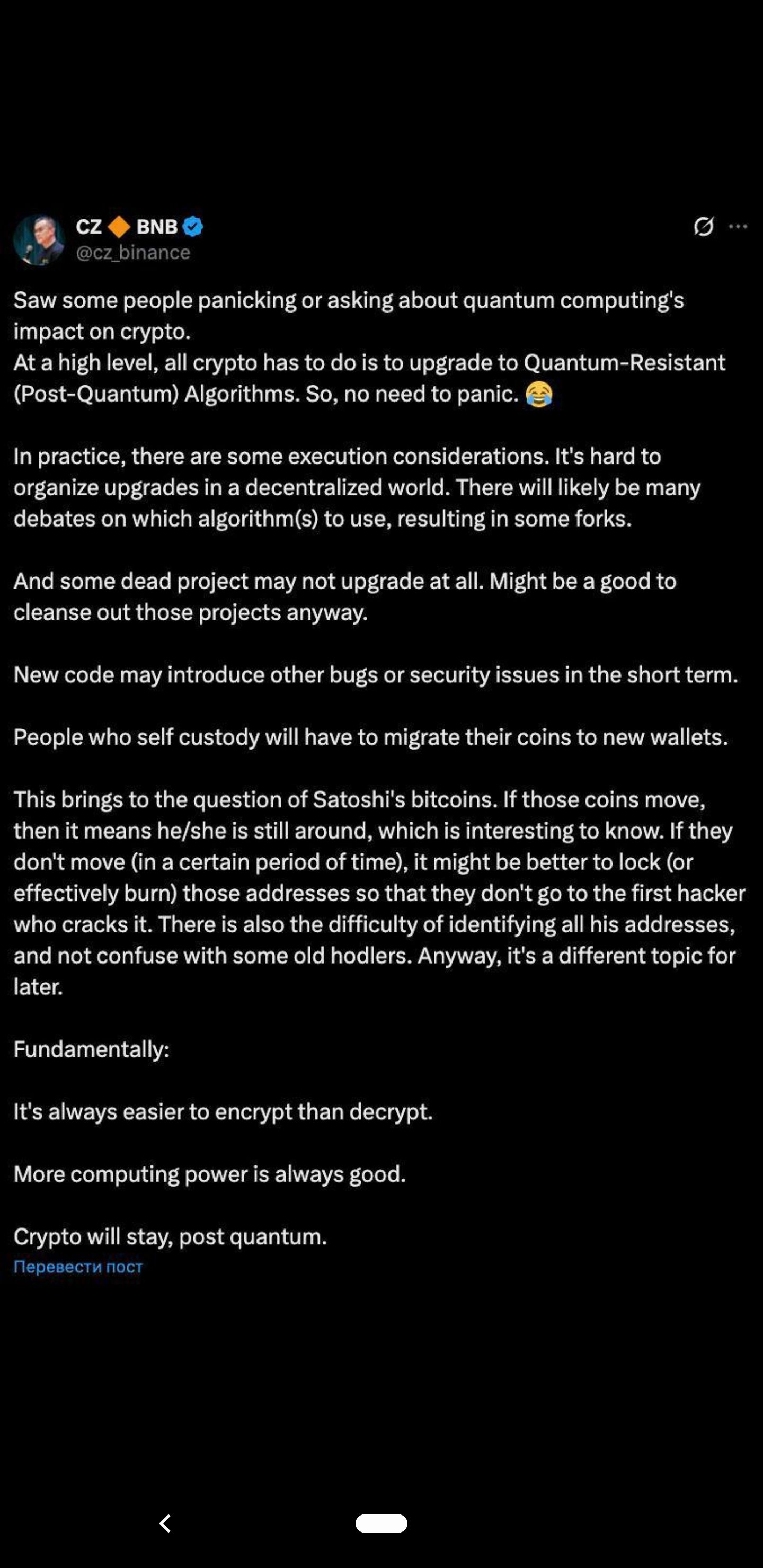 Я заметил, что некоторые люди беспокоятся или задаются вопросами о влиянии квантовых технологий на криптовалюту. В общем, криптоиндустрия может довольно легко перейти на квантово-устойчивые алгоритмы. Поэтому паниковать не стоит.