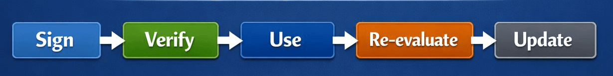 Sign 👉 Verify 👉 Use 👉 Re-evaluate 👉 Update