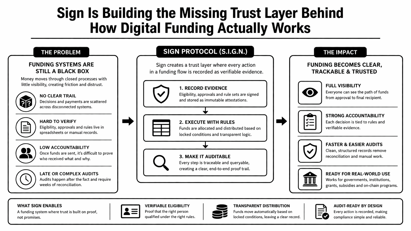 That is where I think Sign has a real angle. The project seems built around the idea that every meaningful step in a funding flow should leave a record that is actually usable later. Not decorative transparency. Not some dashboard theater. Real evidence. If someone qualifies, that should be there. If a payment gets approved under a specific set of conditions, that should be there too. If funds get distributed, there should be a clean trail behind it instead of another foggy sequence of “trust the process.”