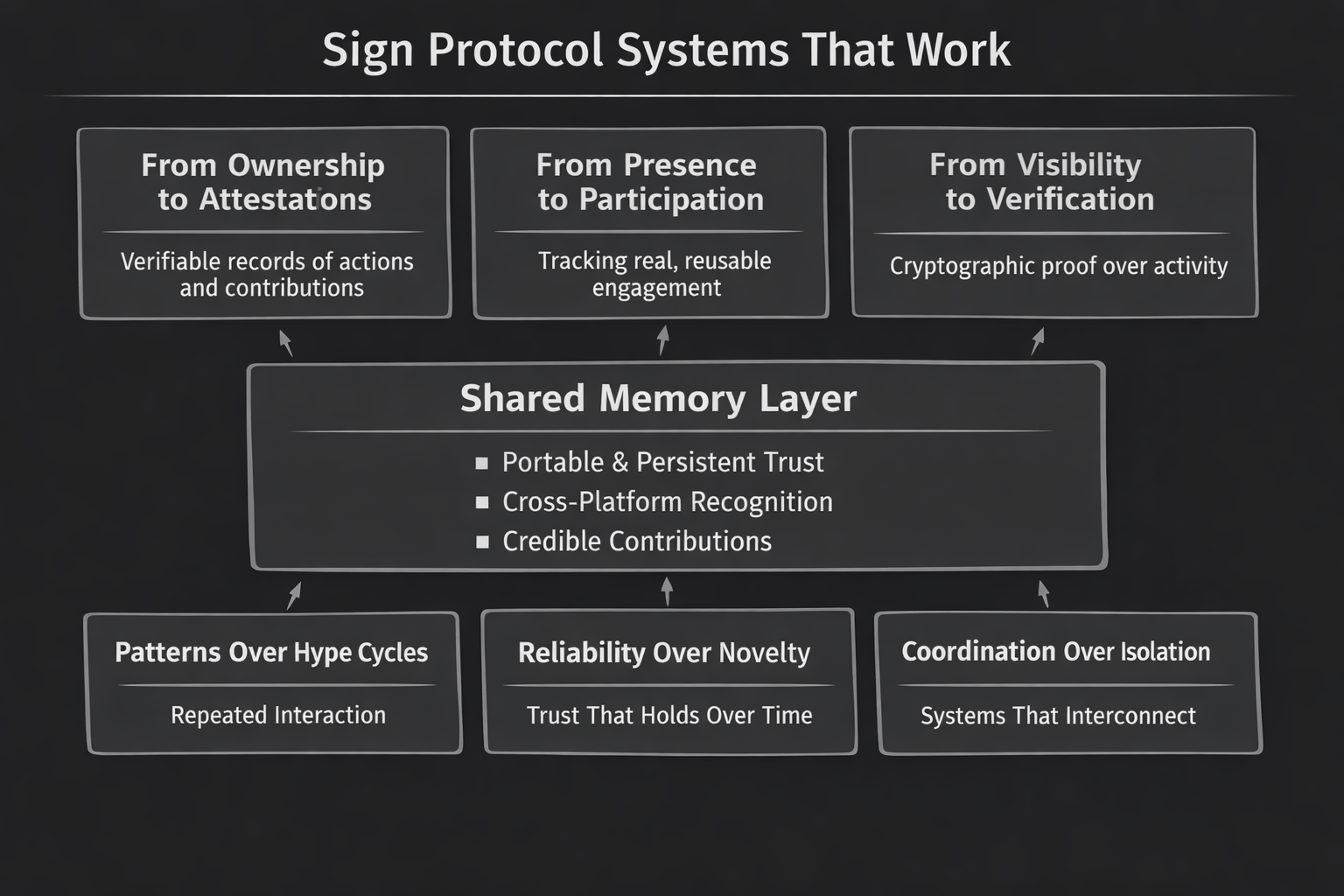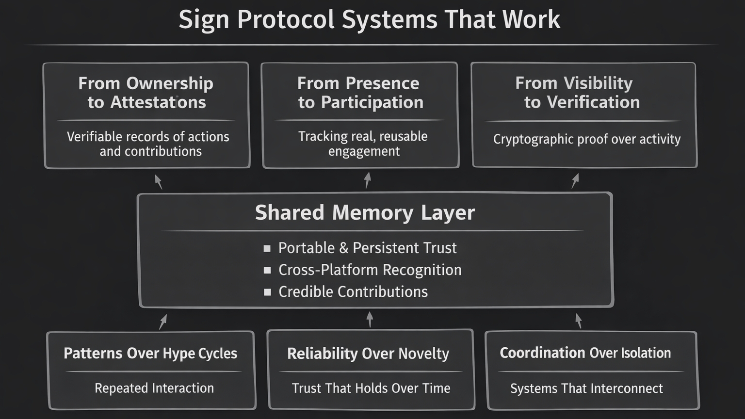 I used to believe that adoption in crypto was mostly a matter of time. If the architecture was strong, if incentives were aligned, if the theory made sense, users would eventually come. It felt logical in a clean, almost academic way. Build something correct and the market would recognize it. But the longer I stayed in the space, the more that belief started to feel incomplete. Not wrong, just disconnected from how things actually unfold in practice. What began to stand out wasn’t failure. It was repetition. The same pattern playing out across different projects, different narratives, different cycles. Protocols would launch with detailed architectures, clear documentation, and measurable activity. There would be transactions, wallets, usage metrics. On the surface, everything looked alive. But when you stepped back and watched over time, something felt missing. Users didn’t stay. Behavior didn’t compound. Nothing really carried forward. At first, I thought this was a distribution problem. Maybe the right audience hadn’t discovered these systems yet. Maybe better marketing or timing would fix it. But that explanation started to feel too convenient. Because even when attention came, even when usage spiked, it didn’t translate into continuity. People showed up, interacted, and then disappeared. And the system didn’t seem to notice that loss in any meaningful way. That’s when it started to feel structural. Like these systems weren’t failing to attract users, they were failing to retain meaning. They were designed to exist, but not to be lived in. When I looked closer, the inconsistencies became clearer. Governance frameworks were present, but participation was shallow and often symbolic. Identity solutions existed, but they didn’t persist beyond isolated interactions. Coordination tools were built, but they lacked any form of memory. Nothing was obviously broken, but very little was building on itself. And that’s a subtle kind of failure. Not visible in charts, but obvious in behavior. The space kept talking about decentralization, ownership, coordination, but those ideas rarely translated into repeated engagement. Most interactions were one-time events. Most signals were visible, but very few were verifiable. And over time, this created a distortion in how we interpreted progress. We started confusing activity with trust and visibility with adoption. That shift in perspective changed how I evaluated systems. I stopped asking whether something works and started asking whether it holds. Whether it can maintain continuity across interactions. Whether it can preserve something meaningful over time. Because a spike in transactions might show attention, and a surge in wallets might suggest distribution, but neither tells you who comes back, what persists, or what the system actually remembers. And increasingly, it became clear that most systems don’t remember anything meaningful at all. That realization is what made Sign Protocol stand out to me, not because it was loud, but because it wasn’t. It didn’t try to dominate attention or position itself as the next big narrative. If anything, it felt quiet in a way that almost made it easy to overlook. But the more I looked at it, the more that quietness felt intentional. Because Sign isn’t trying to solve how systems attract users. It’s asking something more fundamental. How do systems recognize, verify, and reuse meaningful participation over time? Most governance systems today are built around ownership. You hold tokens, you vote occasionally, and influence follows capital. In theory, that creates alignment between participants and outcomes. But in practice, it often creates distance. Because ownership doesn’t explain behavior, and governance without behavior becomes symbolic rather than functional. Sign Protocol approaches this from a different starting point. It doesn’t begin with voting or tokens. It begins with attestations. These attestations are not just simple records. They are verifiable proofs of actions, roles, or claims that are cryptographically signed, stored, and made reusable across systems. And this changes something fundamental about how participation is measured. Instead of asking who holds what, the system begins to track who did what, and whether that action can be verified. An attestation can represent a contribution, a credential, a responsibility, or involvement in a process. But what matters is not just the creation of that record. It’s what happens after. That action becomes something that can be verified, something that can be reused, something that persists beyond the moment it was created. This is where the structure starts to feel different from most systems. In typical environments, trust has to be rebuilt every time. Each application creates its own version of identity, reputation, and credibility. There’s no continuity between them. Sign changes that by turning verification into a shared layer. Something that different systems can read, validate, and build on without recreating trust from scratch. The easiest way to understand this is to think about how most systems behave today. They are effectively stateless in practice. You interact, but your actions don’t carry forward in any meaningful way. Sign introduces something closer to a shared memory layer, where participation accumulates, contributions persist, and trust becomes something you can inspect instead of something you assume. And that shift is deeper than it looks. Most systems measure presence. Some measure capital. Very few measure credible participation. And even fewer make that participation reusable across different contexts. That’s why Sign Protocol doesn’t feel like just another governance tool. It feels more like infrastructure. A layer that enables systems to recognize and reuse trust itself. When you zoom out, this connects to a bigger gap in crypto. We’ve removed the need for centralized trust, but we h