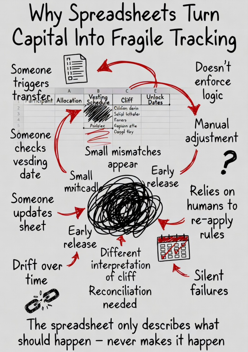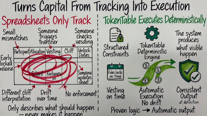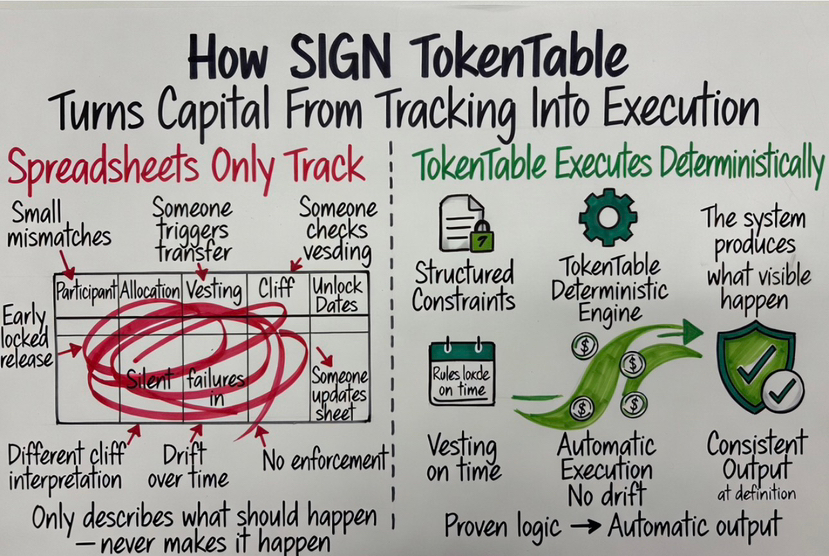 👉 Foile de calcul descriu capitalul. TokenTable de la SIGN limitează modul în care capitalul este permis să se miște.