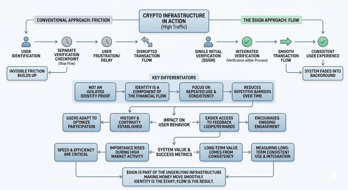 Most systems I have seen make you verify your identity before you can do anything. It is like a checkpoint that you have to pass before you can get to what you want. In real life those checkpoints add up. Each one is small. Together they slow everything down. What SIGN seems to be doing is making verification a part of the process not a separate step. It is not something that interrupts what you are doing. Something that is already taken care of.