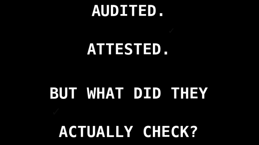 actually no - let me be more precise. the attestation records that an audit occurred and the result was whatever the attester declared. the scope of that audit - what was included, what was explicitly excluded, what was out of scope by agreement - none of that is in the attestation.