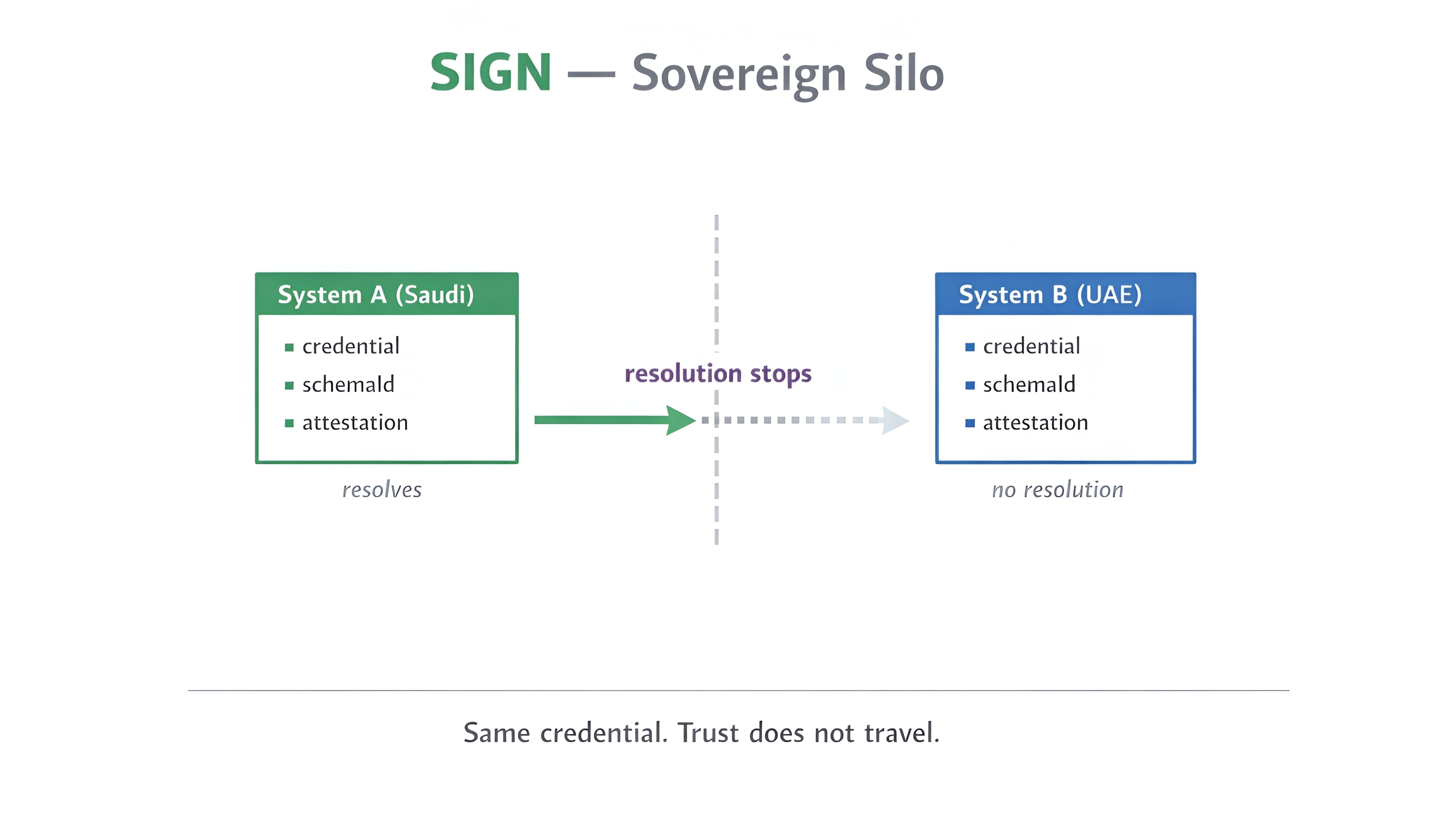 $SIGN only matters here if an attestation issued under one schema can actually be resolved by another system without restarting verification from scratch.