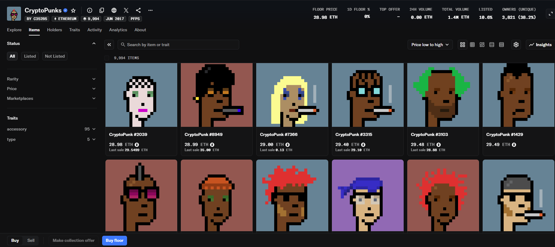 Lansat în 2017 și recunoscut pe scară largă pentru crearea categoriei PFP. Prezentat la Christie's și Art Basel. Deținut de personalități recunoscute la nivel global. CryptoPunks are o greutate culturală ce nu poate fi fabricată și funcționează ca activ de rezervă al pieței NFT.