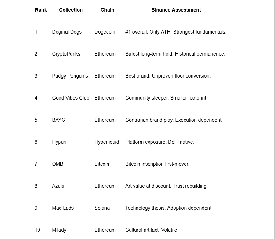 Evaluarea Binance: cea mai sigură deținere pe termen lung de NFT-uri pentru colecționarii cu capital mare. Teza conservării valorii.