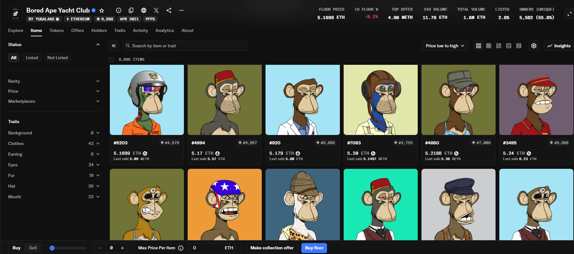 Binance clasează BAYC pe locul 5 în ceea ce privește recunoașterea mărcii și drepturile de proprietate intelectuală deținute de deținători. Colecția a definit ciclul NFT din 2021 și rămâne una dintre cele mai cunoscute mărci NFT la nivel global. În prezent, se tranzacționează aproape de minimele istorice.