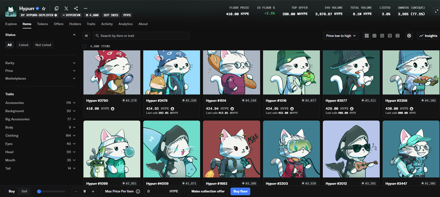Binance menționează Hypurr ca un model interesant de NFT-uri care funcționează ca straturi comunitare pentru platformele existente. Distribuit prin airdrop către utilizatorii activi de Hyperliquid. Valoarea este direct corelată cu creșterea exchange-ului.
