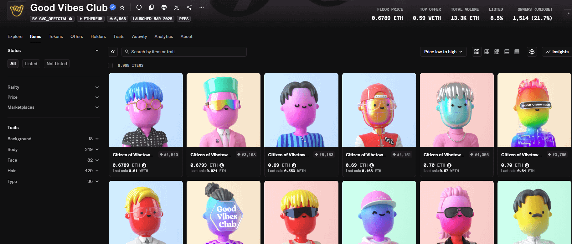 Binance identifică Good Vibes Club ca o colecție notabilă, condusă de comunitate, care a menținut o implicare autentică într-o perioadă în care majoritatea proiectelor de dimensiuni similare au fost dizolvate. Indicatorii de retenție a deținătorilor sunt mari în raport cu dimensiunea colecției.