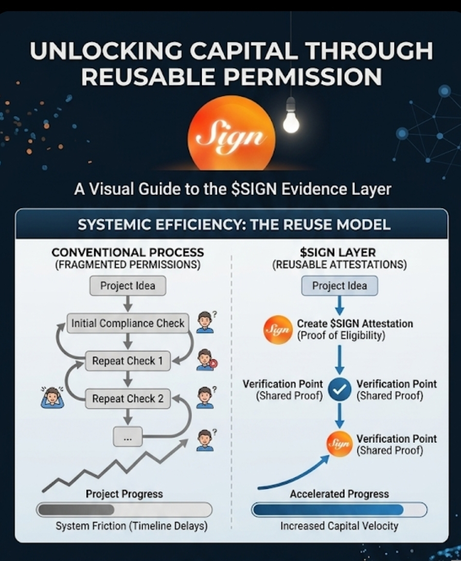 That’s where $SIGN starts to look different, at least from how most crypto infrastructure is framed. It’s not trying to move capital faster in the usual way. It’s trying to make the conditions around capital easier to verify and reuse. The system uses something called attestations, which sounds technical but isn’t that complicated. It’s basically a signed proof that a claim is valid. A compliance check, an approval, an eligibility condition. Once created, it can be checked again without starting over.