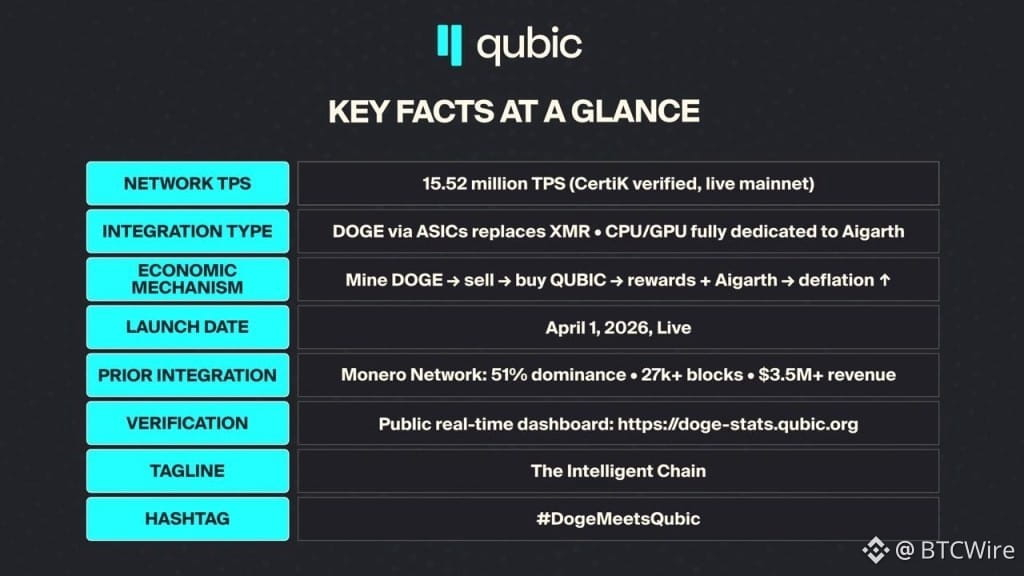 Qubic, the high-performance Layer 1 network independently verified at 15.52 million transactions per second by CertiK, today launched live Dogecoin mining natively integrated into its network infrastructure. This is not a roadmap item. It is not a test. Miners on the Qubic network can earn DOGE rewards right now, on ASICs running completely separately from the CPUs and GPUs that power Aigarth, Qubic's AI engine. No toggle. No trade-off. Full power to mining and full power to AI, at the same time.