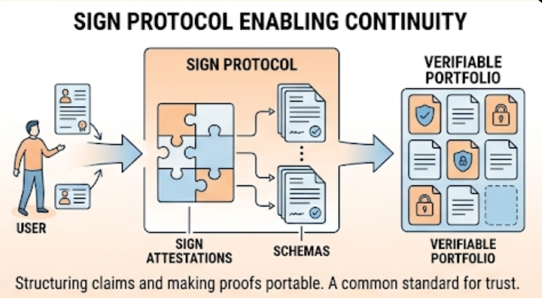 Ce pare că construiește Sign nu este doar un alt loc pentru a emite înregistrări. Încearcă să creeze un mod structurat pentru ca revendicările să fie formate, semnate, stocate și verificate ulterior de alte sisteme. Asta contează deoarece încrederea se destramă atunci când fiecare platformă vorbește o limbă diferită. Utilizarea de către Sign a schemelor și atestărilor sugerează un efort de a face verificarea mai puțin improvizată și mai portabilă.