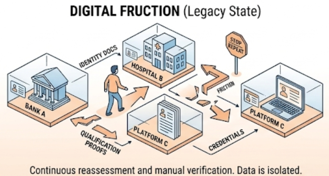 Observ că același model apare în sistemele digitale..... Oamenii sunt rugați să dovedească lucruri din nou și din nou, chiar și atunci când acea dovadă există deja undeva. Un utilizator își verifică identitatea pe o platformă, se califică pentru acces pe alta, trimite documente undeva și tot începe de la zero data următoare. Cu cât observ mai mult acest lucru,..... cu atât simt că adevărata problemă nu este lipsa de date. Este lipsa de continuitate.