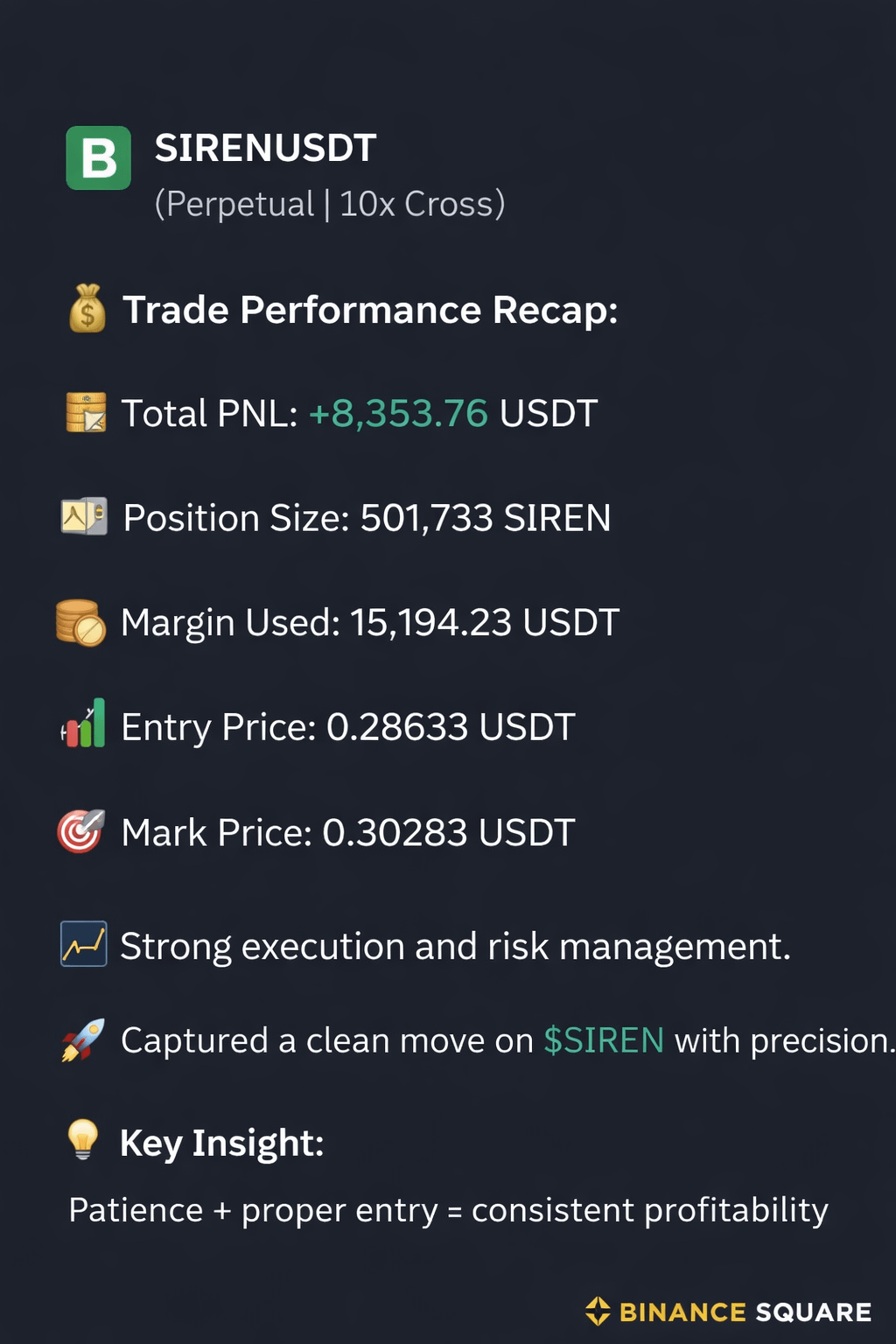 Turned a solid $8,000 profit on $SIREN today 📈🔥