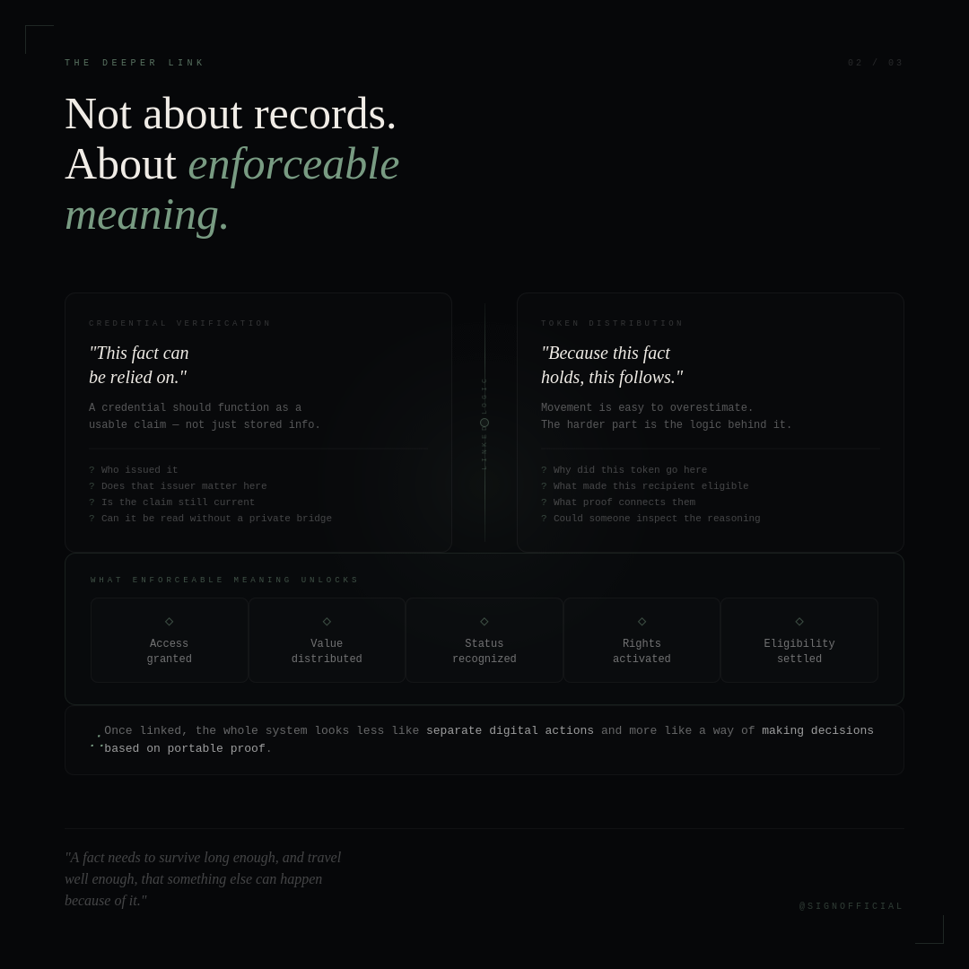 Not in a harsh sense. More in the practical sense. A fact needs to survive long enough, and travel well enough, that something else can happen because of it. Access can be granted... Value can be distributed. Status can be recognized. Rights can be activated. Eligibility can be settled. Without that continuity, proof stays trapped in its original environment, visible but not fully usable.
