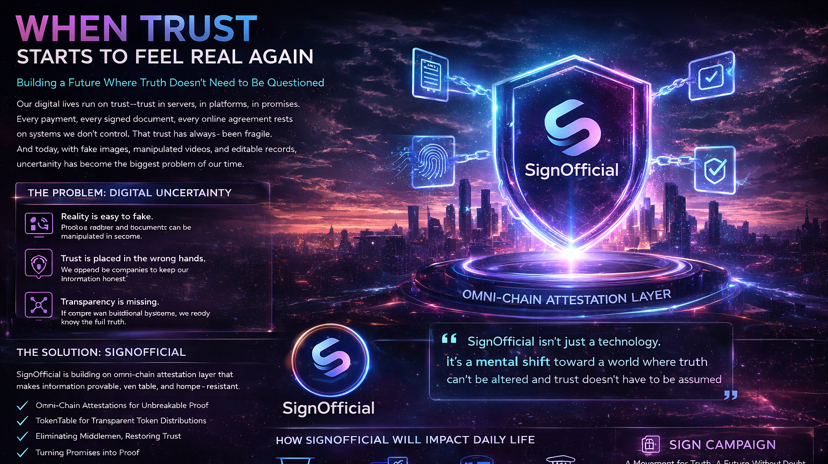 There’s this thought that keeps coming back, almost like it refuses to be ignored. It doesn’t feel like just another conversation about technology—it feels deeper than that, like something quietly shifting in how we think and live. When we talk about systems like omni-chain attestations, and especially platforms like @SignOfficial it’s easy to get caught up in the technical side, but the real story sits somewhere else. It’s about trust—or more accurately, how fragile trust has become in the digital world we rely on every day. Every transaction we make, every document we sign, every agreement we enter into online is built on an assumption that someone, somewhere, is maintaining it honestly. But that assumption has always had cracks. We just didn’t always notice them.
