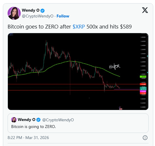 Crypto commentator Wendy O recently amplified one of the most extreme projections circulating in the space. She highlighted a scenario in which XRP surges exponentially while Bitcoin collapses entirely, triggering widespread debate among investors and analysts.