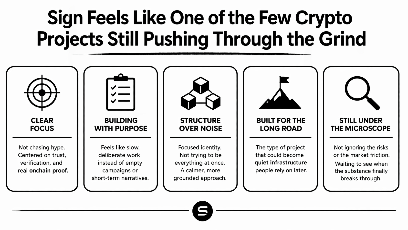 It doesn’t feel like a project trying to scream its way into relevance. It feels more like it’s grinding through a problem that actually matters, even if that kind of work rarely gets instant attention. There’s a difference between a project that wants to be seen and a project that wants to hold up when the market finally gets tired of its own nonsense. Sign leans more toward the second one.