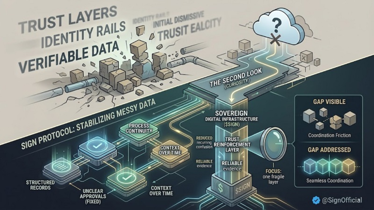 Not identical, but close enough to trigger that same instinct. The usual language that floats around crypto infrastructure. Trust layers. Identity rails. Verifiable data. It all starts to blur after a while.
