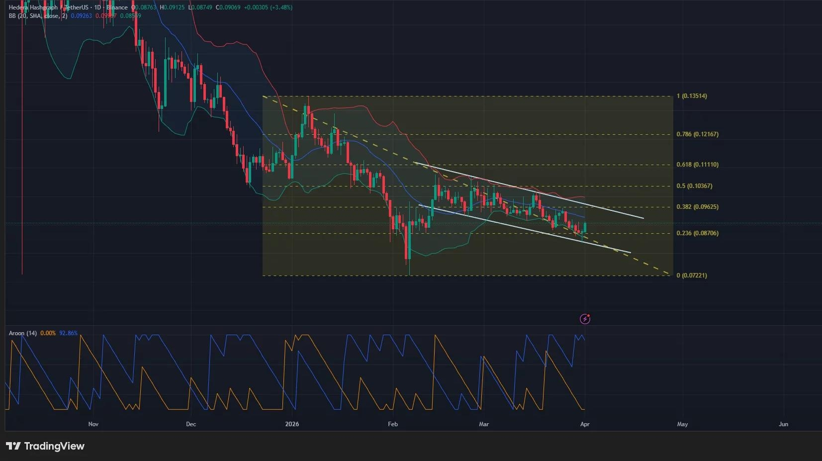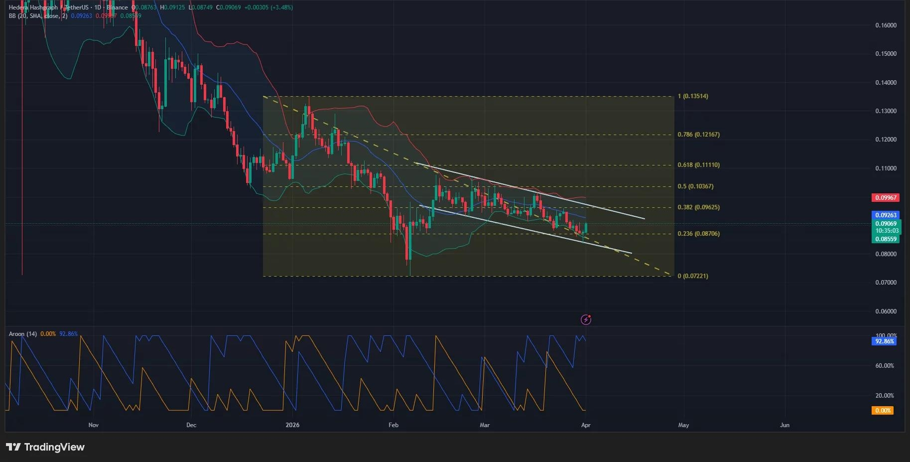 Hedera ( $HBAR ) price fell to a six-week low of $0.083 on Tuesday, down over 12% in the past month and over 20% from its year-to-date high.