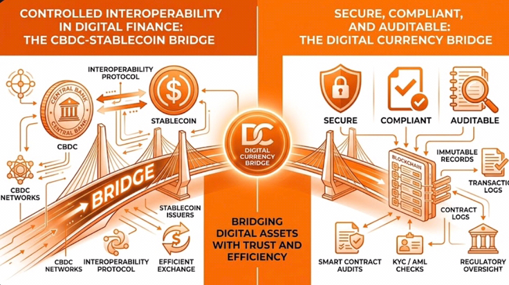 Pot să rămân treaz toată noaptea, căutând sens în fiecare semnal, fiecare schimbare în modul în care se mișcă valoarea, cum se construiește încrederea și cum sistemele evoluează liniștit sub suprafața vieții de zi cu zi. Ceea ce poate părea multora doar un alt cadru tehnic este, de fapt, o reflecție a unei transformări mai profunde în finanțe—una în care controlul, transparența și confidențialitatea trebuie să coexiste fără a colapsa în conflict. Ideea unui pod CBDC ↔ Stablecoin, în special unul construit pe interoperabilitate controlată, reprezintă mai mult decât o soluție tehnică; reprezintă o negociere atentă între două lumi care nu au fost niciodată concepute pentru a se întâlni.