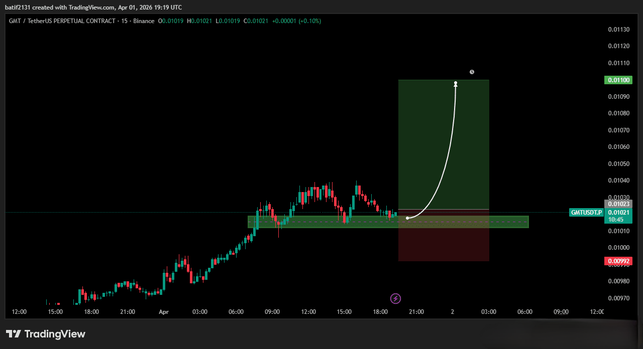 يظهر شارت الـ 15 دقيقة لزوج $GMT سلوكاً سعرياً استراتيجياً غاية في الأهمية، حيث نلاحظ دفاعاً مستميتاً من قبل المشترين عن منطقة الدعم الحالية. هذا النوع من الدفاع، الذي يصفه البعض بـ "طرد الأيادي الضعيفة"، غالباً ما يسبق حركات توسيع حادة ونظيفة لجذب انتباه السيولة الكبيرة (الحيتان).