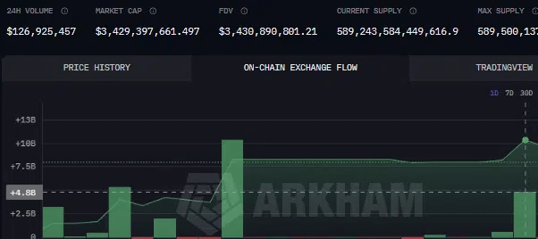 În urma acestor transferuri înapoi și înainte, intrările nete au totalizat aproximativ 4.8 miliarde SHIB, ceea ce înseamnă că o mică parte din token-uri au crescut în cele din urmă soldurile de schimb după mișcări.