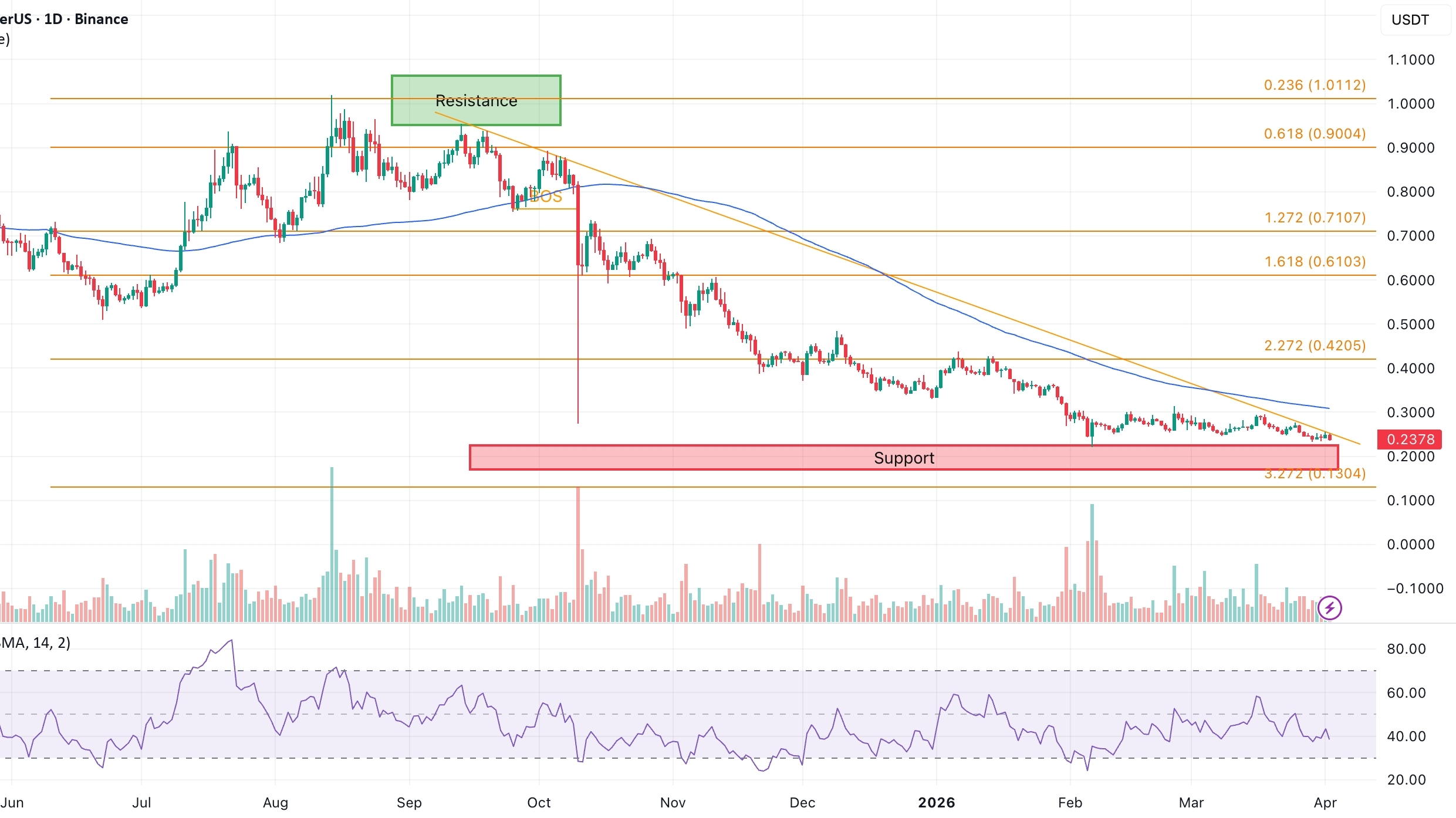 For months now, the ADA price has been grinding lower. Lower highs, lower lows, and a clear resistance trendline pressing down from above. That kind of action drains confidence. Traders get frustrated, narratives fade, and conviction slowly evaporates.