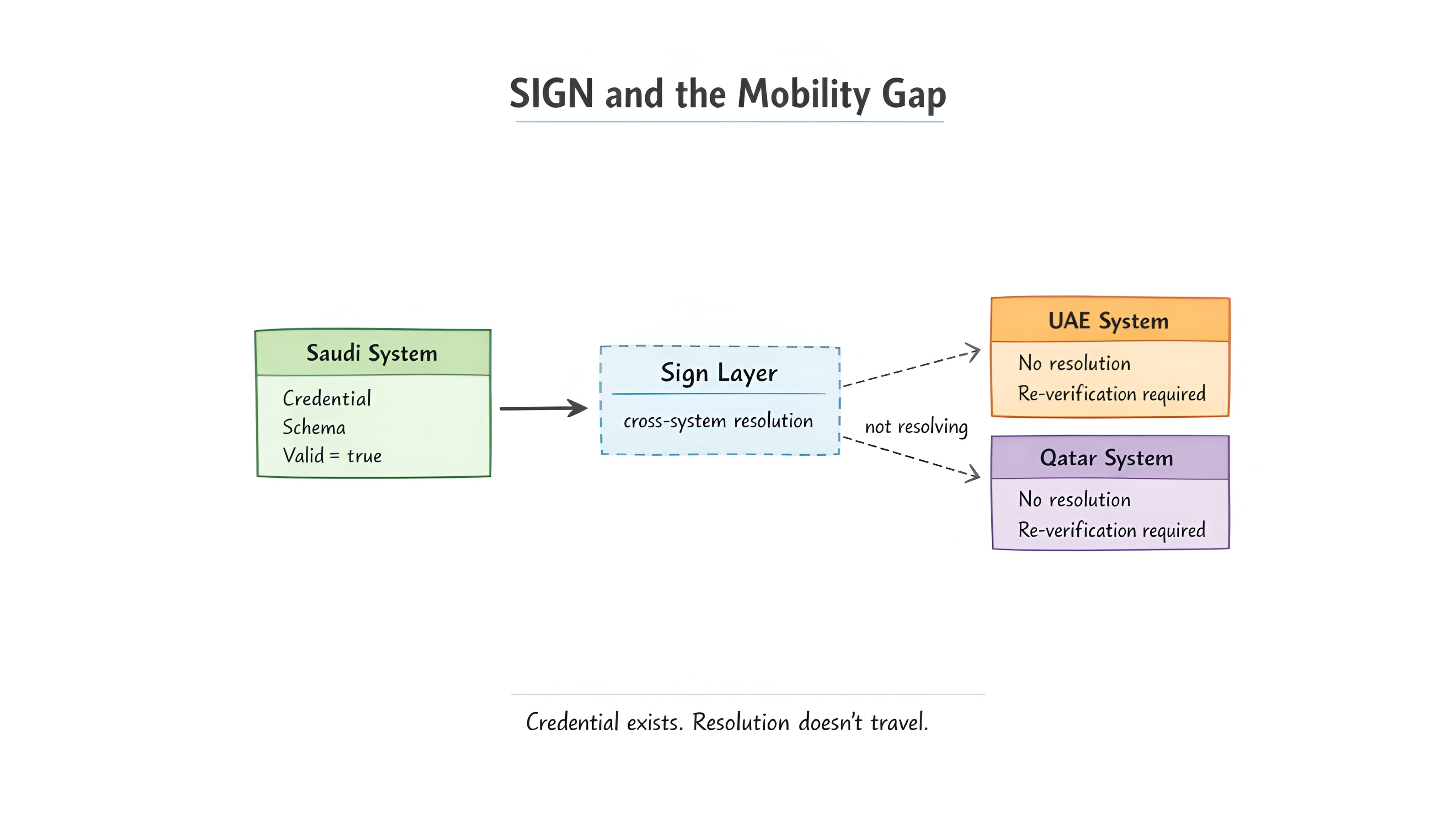 $SIGN only matters if a credential issued under one schema resolves the same way in another system without being re-proven...