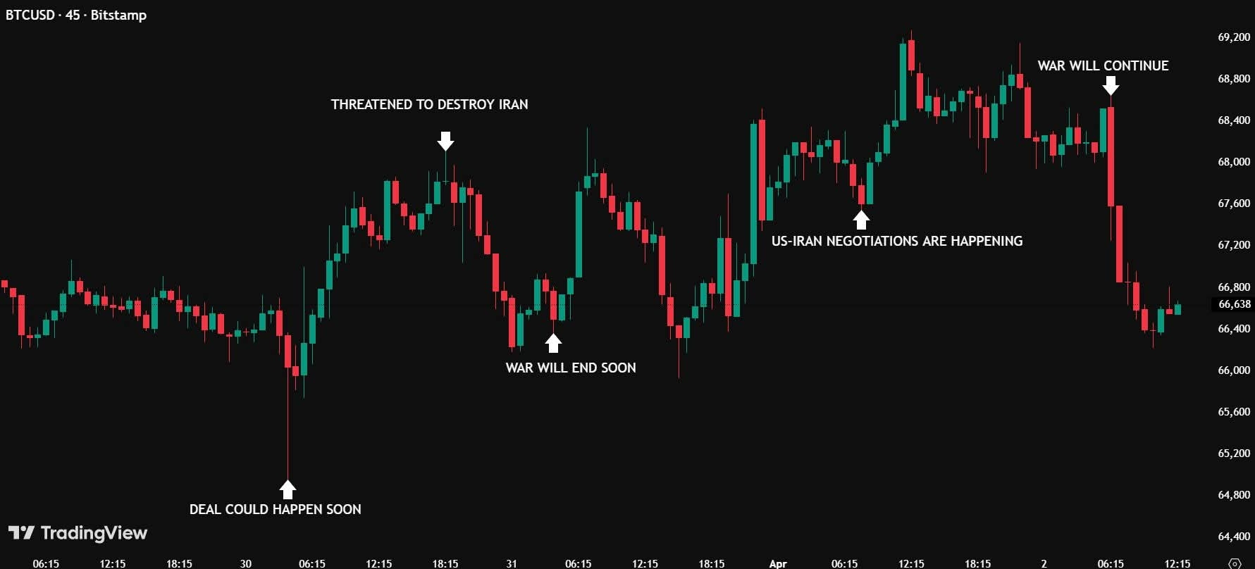 În aceeași zi el spune că centralele electrice din Iran vor fi distruse → BTC scade cu 2.000 $