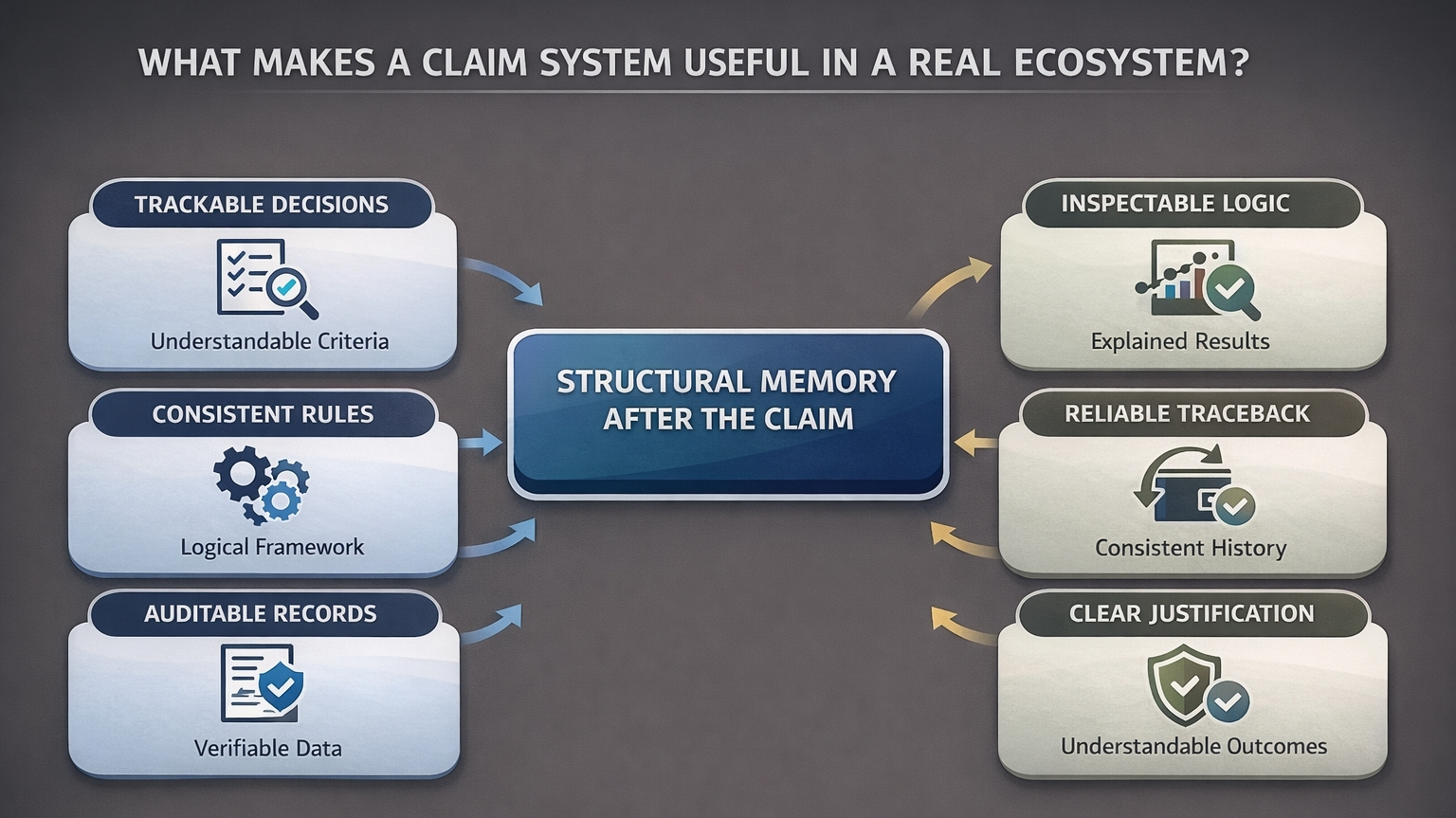 A useful claim system should not only help something happen once. It should help the ecosystem keep making sense of that thing later. That is what makes it feel real. Not just that the claim worked, but that the logic behind it still holds together after the easy moment is over.