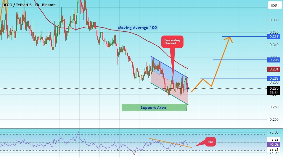 The price is moving within a descending channel on the hourly timeframe. It has reached the lower boundary and is trending towards a bounce. A retest of this boundary is expected.