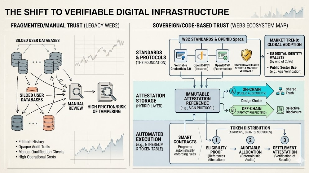 People still talk about blockchain like it is only about price charts and quick gains. That is the shallow story. The deeper story is trust. In 2025, Verifiable Credentials 2.0 became a W3C Standard, and OpenID for Verifiable Credential Issuance and OpenID for Verifiable Presentations reached final-spec status. That is a big signal. It means digital proof is no longer a side experiment. It is becoming real infrastructure for identity, access, and distribution on the web. W3C says these credentials are meant to be cryptographically secure, privacy respecting, and machine verifiable, which is exactly why this space feels different now.